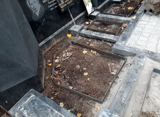 На данном участке недавно произошло дозахоронение. Это послужило для клиента решающей причиной заказать комплексный ремонт могилы, включающий в себя полное благоустройство с места захоронения. Когда мы приехали на кладбище, то действительно обнаружили на участке следы недавних раскопок.