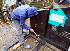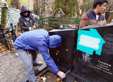 После чего водрузили новые надгробья на подготовленные основания.